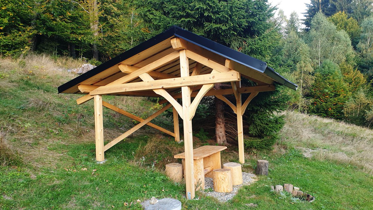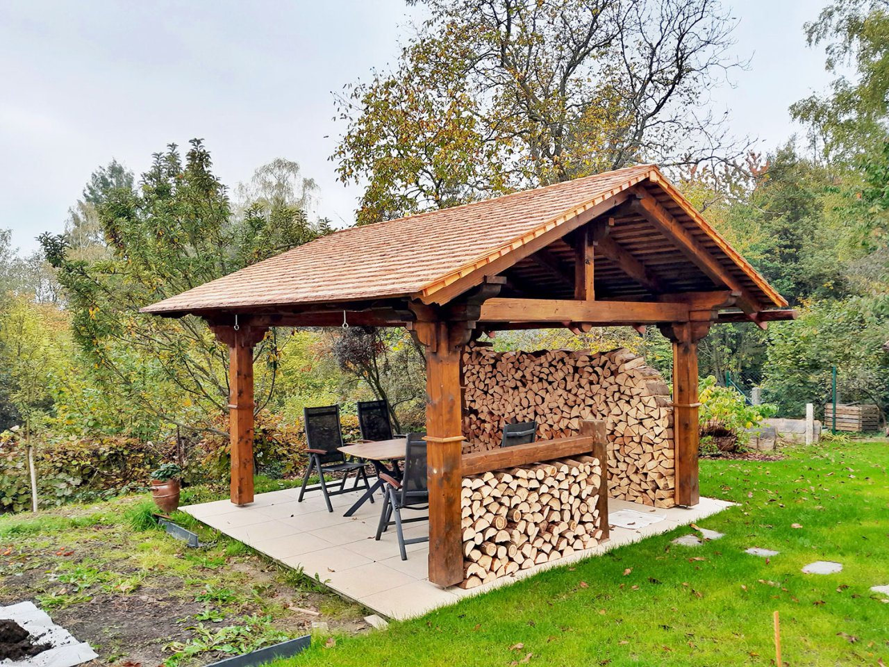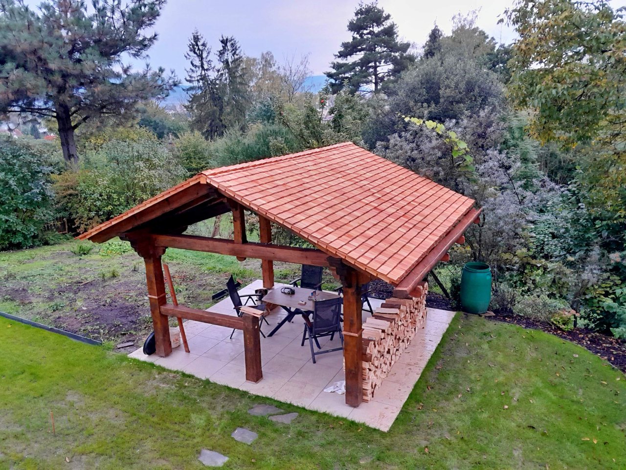 Pergola s šindelovou sgtřechou