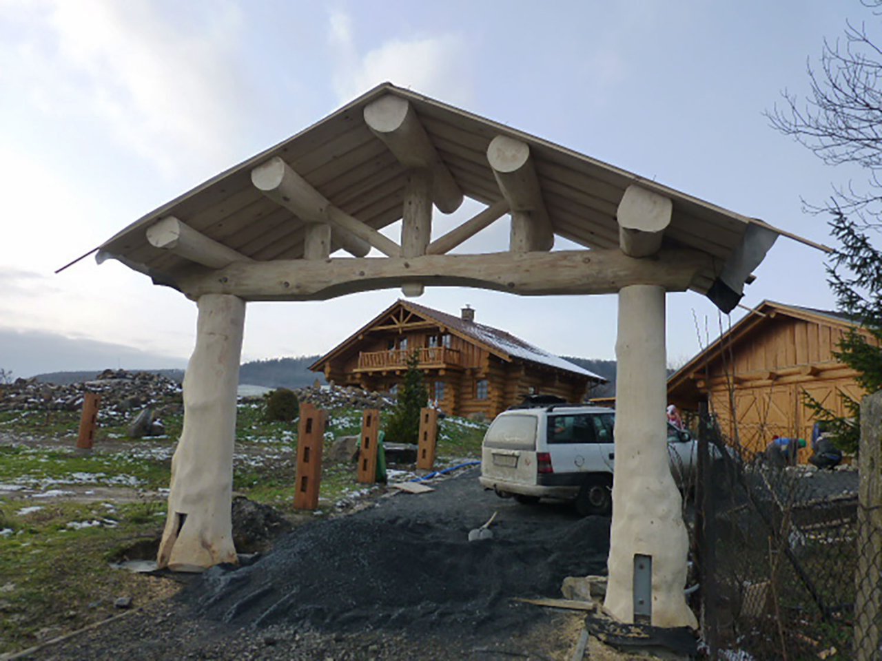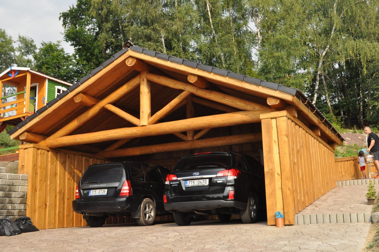 Garážové stání z kulatiny