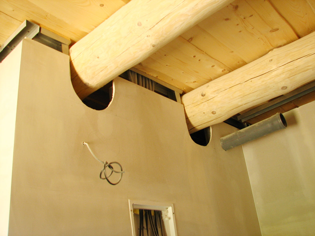 I po technologické přestávce, kdy necháme konstrukci přirozeně vyschnout, nám po dokončení topení v domě dřevo stejně ještě o pár centimetrů sedne. Neoddělitelnou součástí vysychání dřeva jsou výsušné praskliny, které mohou být někdy obrovské, a rány, které vysychání doprovází.